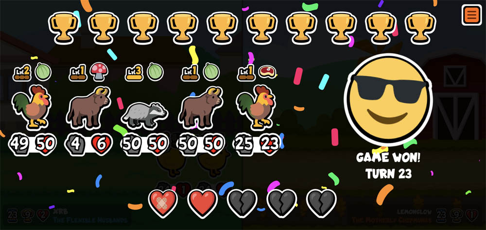 | 08 Jun 2023 | 1 | 3 | 3 | Friend ahead faints: Gain Melon perk and +1 attack. | Friend ahead faints: Gain Melon perk and +2 attack. | Friend ahead faints: Gain Melon perk and +3 attack. |